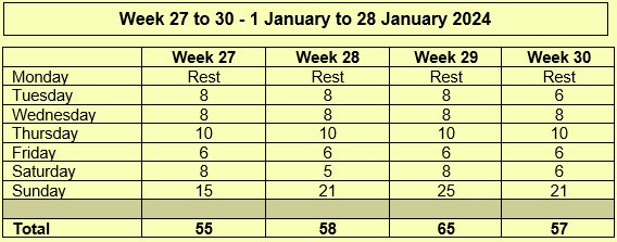 Week 27 to Week 30. 1 January to 28 January – 2024.
